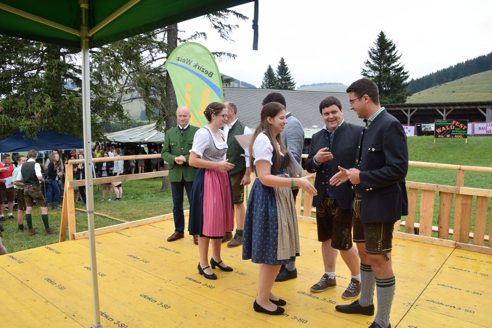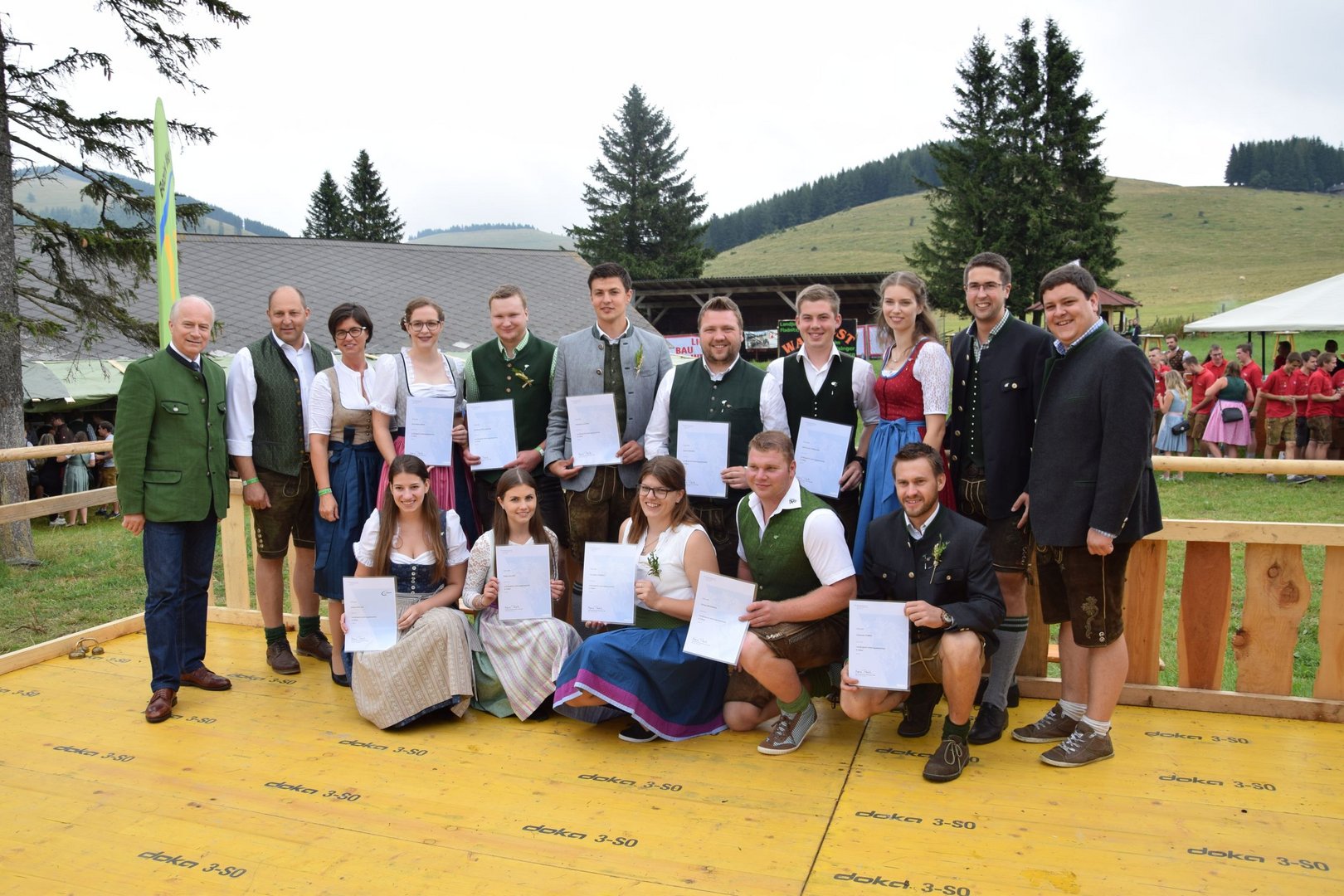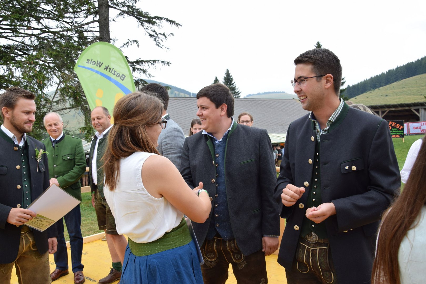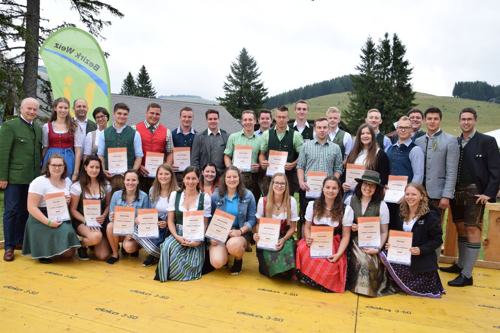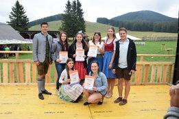 Vergangenen Sonntag, dem 28. Juli 2019, traf sich wieder Jung und Alt auf der Teichalm zum 65. Teichalmtreffen der Landjugend Bezirk Weiz. Die zahlreichen Besucher trotzten dem durchwachsenen Wetter, um auf der Alm ihr Tanzbein zu schwingen. Eröffnet wurde das Fest mit einem Marschkonzert der Ortskapelle Gutenberg. Die heilige Messe wurde von Pfarrer Mag. Karl Rechberger gestaltet. Danach wurde der Festakt mit der Meisterbriefverleihung, welche von Kammerobmann Josef Wumbauer und Bezirksbäuerin Ursula Reiter vorgenommen wurde, begonnen. Unsere aktivsten Landjugendlichen des Bezirkes Weiz wurden mit den Leistungsabzeichen geehrt. Von Landesrat Johann Seitinger, Landesobmann Stefan Sonnleitner und Landesobmann Stv. Daniel Windhaber erhielten 28 Jugendliche das Abzeichen in Bronze und 10 Jugendliche das Abzeichen in Silber. Außerdem bedankten wir uns bei unserem Wirt, dem Unterberger Peter, für die jahrelange Unterstützung mit dem steirischen Ehrenabzeichen in Silber der Landjugend Steiermark. Ein weiterer Tagespunkt war die Verkündung der Sieger unserer Punkteolympiade. Hierbei wurden die aktivsten Landjugendmitglieder des vergangenen Landjugendjahres ausgezeichnet. Spannend war auch wieder die Verlosung der alljährlichen Grillparty unter allen unseren Ortsgruppen. Für die musikalische Unterhaltung am Nachmittag sorgten „Die jungen Südsteirer“. Gemeinsam mit unserem offenen Volkstanzen garantierten sie für beste Stimmung und viel Spaß unter unseren Festgästen. Die Besucher konnten außerdem ihr Geschick bei unserem Publikumsbewerb, dem „Kistenkraxln“, unter Beweis stellen. Wir möchten uns bei allen unseren wetterfesten Besuchern bedanken und freuen uns auf ein Wiedersehen beim 66. Teichalmtreffen im nächsten Jahr. Ein herzliches Dankeschön dürfen wir auch allen Landjugendmitgliedern aus unseren 21 Ortsgruppen und allen unseren Helfern aussprechen. Dank ihres tollen Einsatzes war das 65. Teichalmtreffen auch bei wechselhaften Wetterbedingungen wieder ein voller Erfolg.