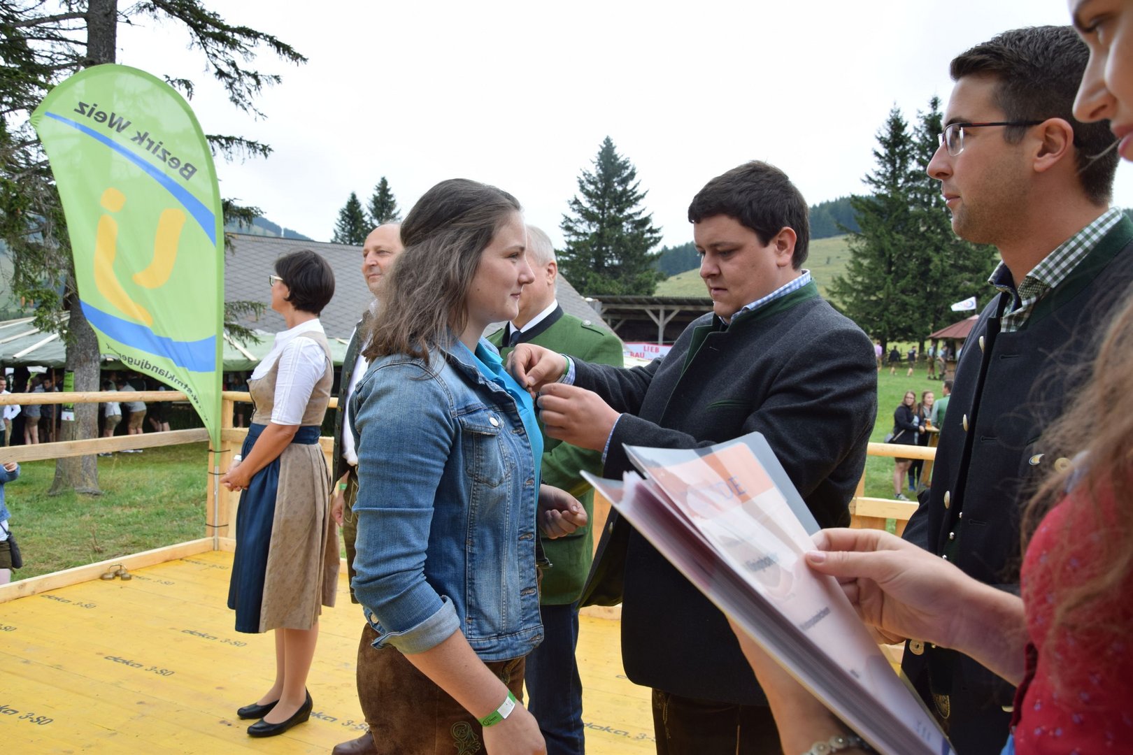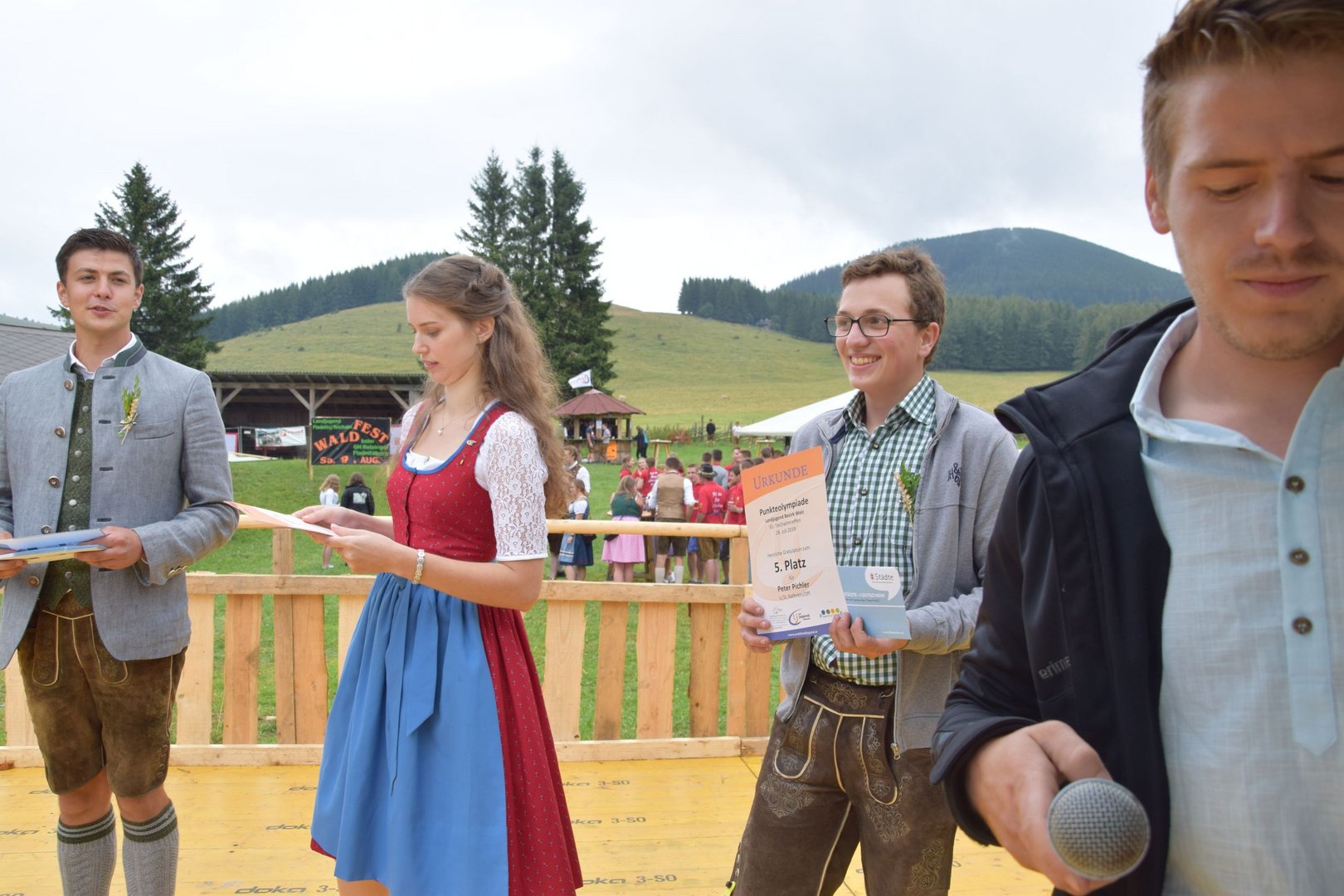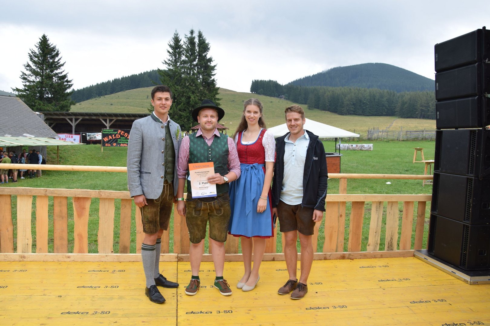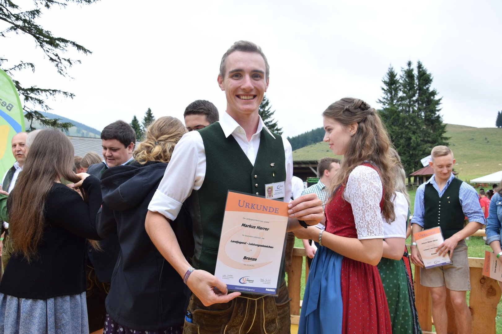 Vergangenen Sonntag, dem 28. Juli 2019, traf sich wieder Jung und Alt auf der Teichalm zum 65. Teichalmtreffen der Landjugend Bezirk Weiz. Die zahlreichen Besucher trotzten dem durchwachsenen Wetter, um auf der Alm ihr Tanzbein zu schwingen. Eröffnet wurde das Fest mit einem Marschkonzert der Ortskapelle Gutenberg. Die heilige Messe wurde von Pfarrer Mag. Karl Rechberger gestaltet. Danach wurde der Festakt mit der Meisterbriefverleihung, welche von Kammerobmann Josef Wumbauer und Bezirksbäuerin Ursula Reiter vorgenommen wurde, begonnen. Unsere aktivsten Landjugendlichen des Bezirkes Weiz wurden mit den Leistungsabzeichen geehrt. Von Landesrat Johann Seitinger, Landesobmann Stefan Sonnleitner und Landesobmann Stv. Daniel Windhaber erhielten 28 Jugendliche das Abzeichen in Bronze und 10 Jugendliche das Abzeichen in Silber. Außerdem bedankten wir uns bei unserem Wirt, dem Unterberger Peter, für die jahrelange Unterstützung mit dem steirischen Ehrenabzeichen in Silber der Landjugend Steiermark. Ein weiterer Tagespunkt war die Verkündung der Sieger unserer Punkteolympiade. Hierbei wurden die aktivsten Landjugendmitglieder des vergangenen Landjugendjahres ausgezeichnet. Spannend war auch wieder die Verlosung der alljährlichen Grillparty unter allen unseren Ortsgruppen. Für die musikalische Unterhaltung am Nachmittag sorgten „Die jungen Südsteirer“. Gemeinsam mit unserem offenen Volkstanzen garantierten sie für beste Stimmung und viel Spaß unter unseren Festgästen. Die Besucher konnten außerdem ihr Geschick bei unserem Publikumsbewerb, dem „Kistenkraxln“, unter Beweis stellen. Wir möchten uns bei allen unseren wetterfesten Besuchern bedanken und freuen uns auf ein Wiedersehen beim 66. Teichalmtreffen im nächsten Jahr. Ein herzliches Dankeschön dürfen wir auch allen Landjugendmitgliedern aus unseren 21 Ortsgruppen und allen unseren Helfern aussprechen. Dank ihres tollen Einsatzes war das 65. Teichalmtreffen auch bei wechselhaften Wetterbedingungen wieder ein voller Erfolg.