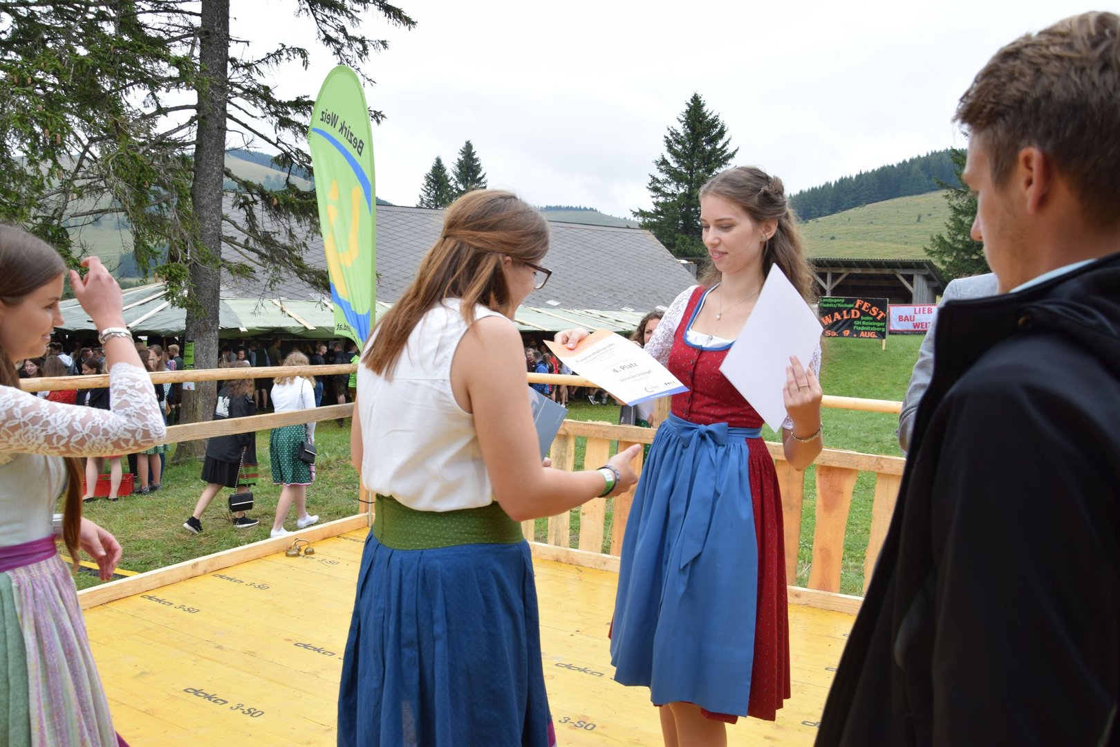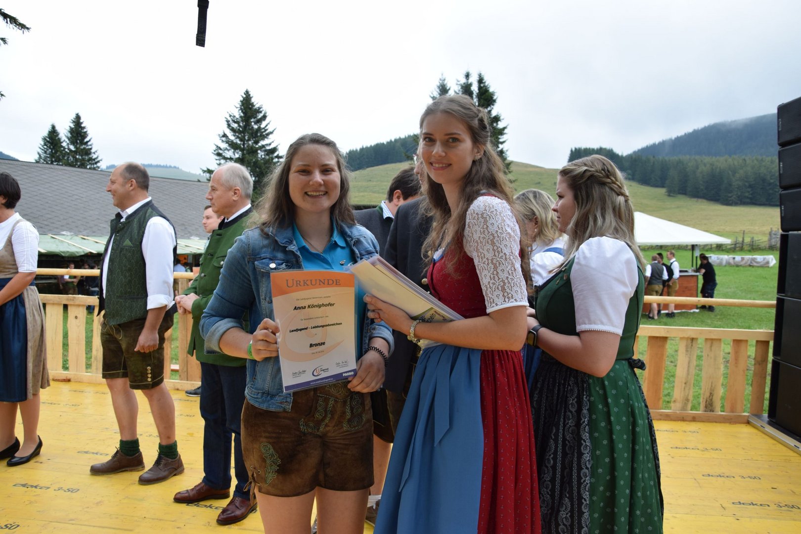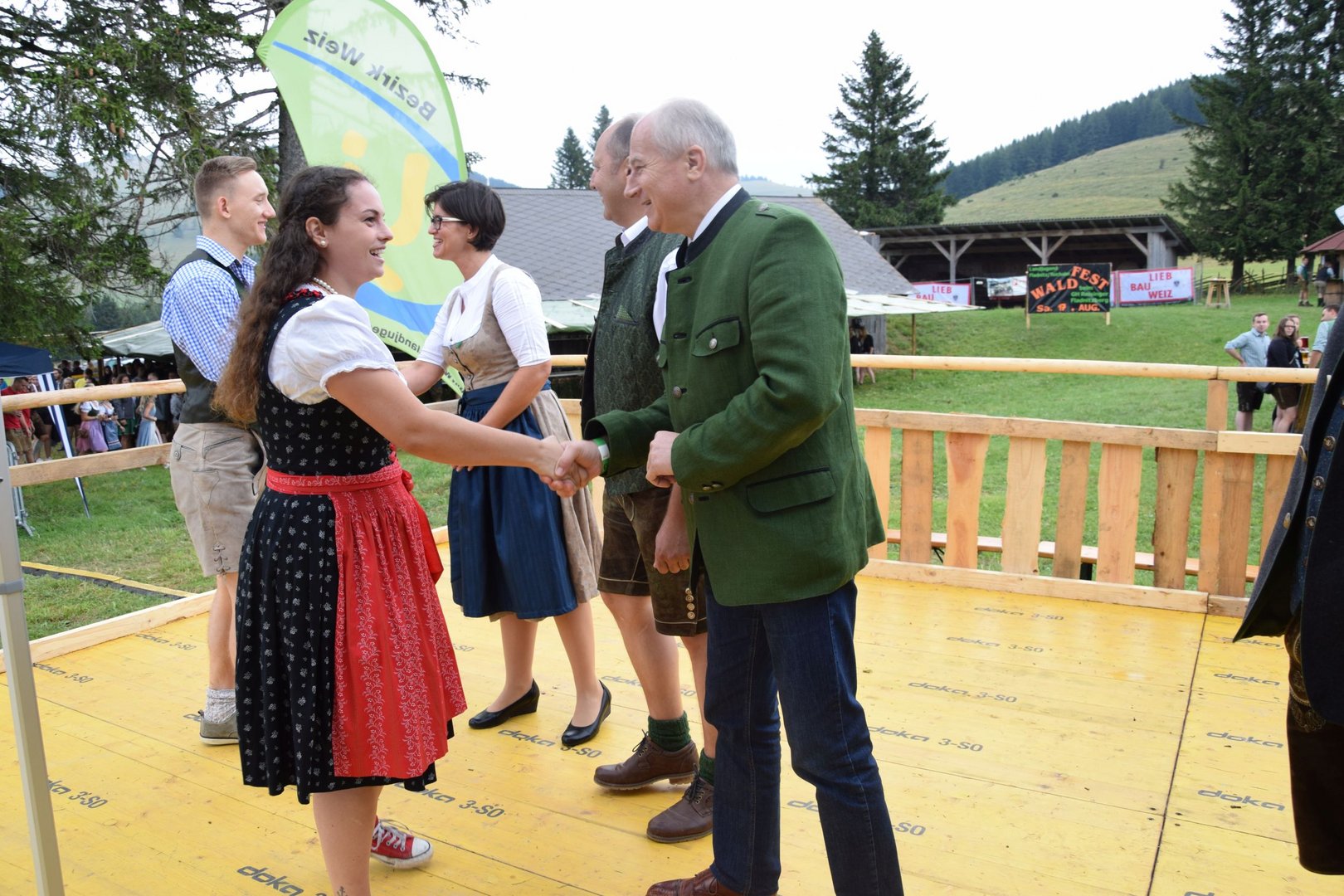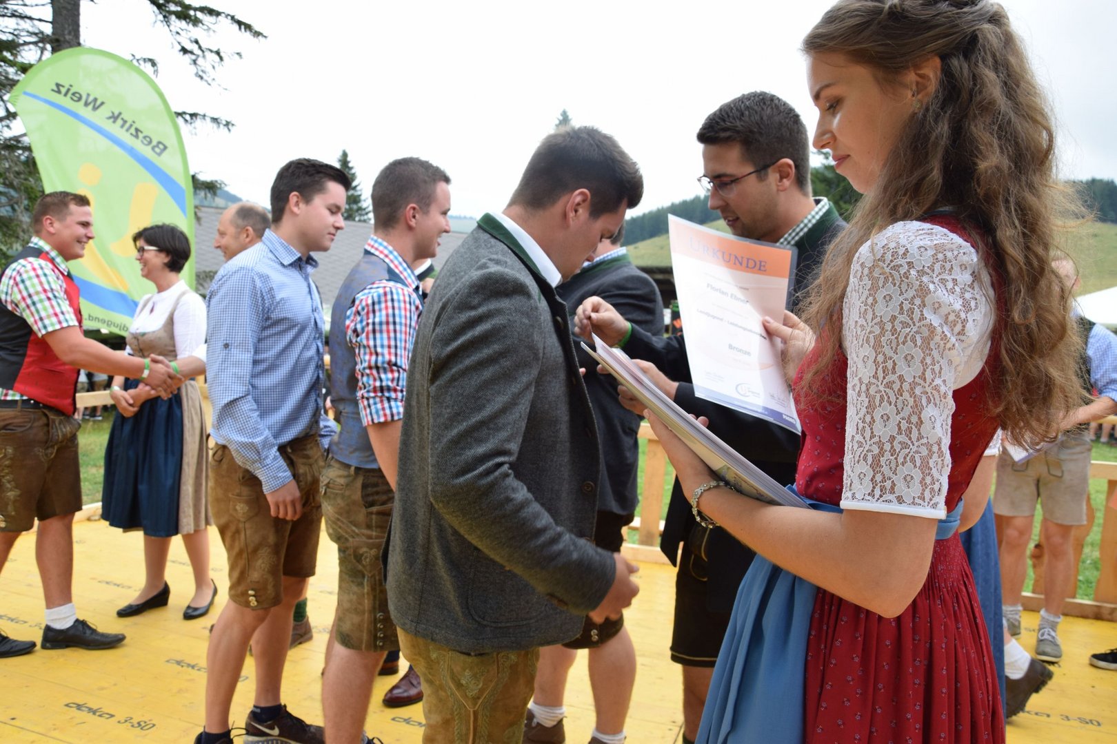 Vergangenen Sonntag, dem 28. Juli 2019, traf sich wieder Jung und Alt auf der Teichalm zum 65. Teichalmtreffen der Landjugend Bezirk Weiz. Die zahlreichen Besucher trotzten dem durchwachsenen Wetter, um auf der Alm ihr Tanzbein zu schwingen. Eröffnet wurde das Fest mit einem Marschkonzert der Ortskapelle Gutenberg. Die heilige Messe wurde von Pfarrer Mag. Karl Rechberger gestaltet. Danach wurde der Festakt mit der Meisterbriefverleihung, welche von Kammerobmann Josef Wumbauer und Bezirksbäuerin Ursula Reiter vorgenommen wurde, begonnen. Unsere aktivsten Landjugendlichen des Bezirkes Weiz wurden mit den Leistungsabzeichen geehrt. Von Landesrat Johann Seitinger, Landesobmann Stefan Sonnleitner und Landesobmann Stv. Daniel Windhaber erhielten 28 Jugendliche das Abzeichen in Bronze und 10 Jugendliche das Abzeichen in Silber. Außerdem bedankten wir uns bei unserem Wirt, dem Unterberger Peter, für die jahrelange Unterstützung mit dem steirischen Ehrenabzeichen in Silber der Landjugend Steiermark. Ein weiterer Tagespunkt war die Verkündung der Sieger unserer Punkteolympiade. Hierbei wurden die aktivsten Landjugendmitglieder des vergangenen Landjugendjahres ausgezeichnet. Spannend war auch wieder die Verlosung der alljährlichen Grillparty unter allen unseren Ortsgruppen. Für die musikalische Unterhaltung am Nachmittag sorgten „Die jungen Südsteirer“. Gemeinsam mit unserem offenen Volkstanzen garantierten sie für beste Stimmung und viel Spaß unter unseren Festgästen. Die Besucher konnten außerdem ihr Geschick bei unserem Publikumsbewerb, dem „Kistenkraxln“, unter Beweis stellen. Wir möchten uns bei allen unseren wetterfesten Besuchern bedanken und freuen uns auf ein Wiedersehen beim 66. Teichalmtreffen im nächsten Jahr. Ein herzliches Dankeschön dürfen wir auch allen Landjugendmitgliedern aus unseren 21 Ortsgruppen und allen unseren Helfern aussprechen. Dank ihres tollen Einsatzes war das 65. Teichalmtreffen auch bei wechselhaften Wetterbedingungen wieder ein voller Erfolg.