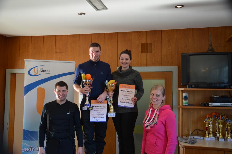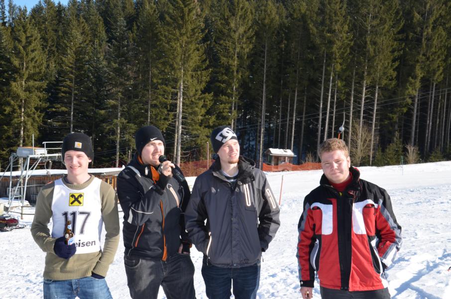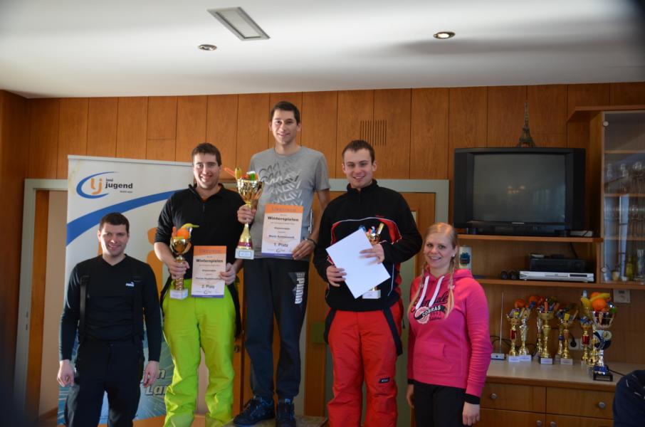 Überstrahlt wurde die Sonne nur von den glücklichen Siegern der vier durchgeführten Bewerbe. Als erstes starteten die Skifahrer in ihr Rennen dabei ging es nicht nur um Schnelligkeit sondern vielmehr darum das die Dreierteams in beiden Läufen die gleiche Zeit fahren. Am besten gelungen ist dies dem Team der Landjugend Miesenbach mit Franz Narnhofer, Michael Goldgruber und Katrin Geier, knapp dahinter landeten Mario Schneeweiß, Christian Derler und Lukas Moser (Lj Birkfeld) den dritten Platz eroberten Christian Strobl, Franz Josef Leitner und Thomas Eibisberger (Lj KTN). Doch es wurden auch die Tagesschnellsten gekürt bei den Mädls war dies Katrin Geier (Lj Miesenbach) und bei den Burschen Andreas Filzmoser aus Gasen.