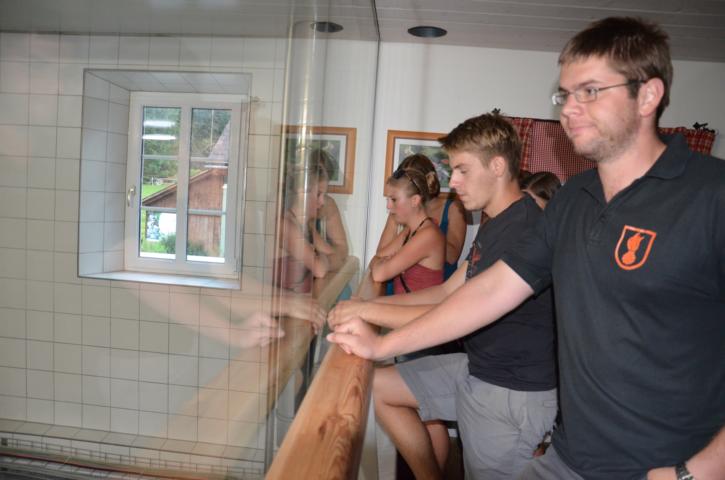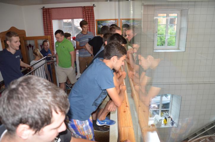 Alles begann mit der Harrerhütte auf der Teichalm, wo in früheren Jahren im Sommer schon immer Butter und Topfen erzeugt wurden. Nach ständiger Weiterentwicklung und Erweiterung des Hofes in Tulwitz ergab sich die Chance zusammen mit der Firma Möstl eine eigene Käserei am Hof zu errichten. Möstls Idee war es auch im ehemaligen Bergwerk von Arzberg Käse reifen zu lassen. Somit kann der Käse der am Hof produziert wird bei perfekten Stollenbedingungen veredelt werden. In der Käserei werden sowohl Schaf- als auch Kuhmilch verarbeitet. Insgesamt werden um die zehn verschiedenen Käsesorten produziert. Ein besonderes Anliegen ist der Familie Leitner, dass ausschließlich Heumilch verwendet wird um damit den bestmöglichen Geschmack zu erreichen. Die Liebe zum Detail und Experimentierfreude brachten der Familie schon zahlreiche Auszeichnungen ein. Bei den Käseweltmeisterschaften erreichten sie sogar die Goldmedaille. Auch wir durften uns selbst von der Qualität der Produkte überzeugen. Egal ob Joghurt, Hart- oder Weichkäse – es schmeckte wirklich alles hervorragend. Wir sagen DANKE für die hervorragende Führung und die tolle Verkostung und wünschen weiterhin viel Erfolg mit der Käseproduktion.