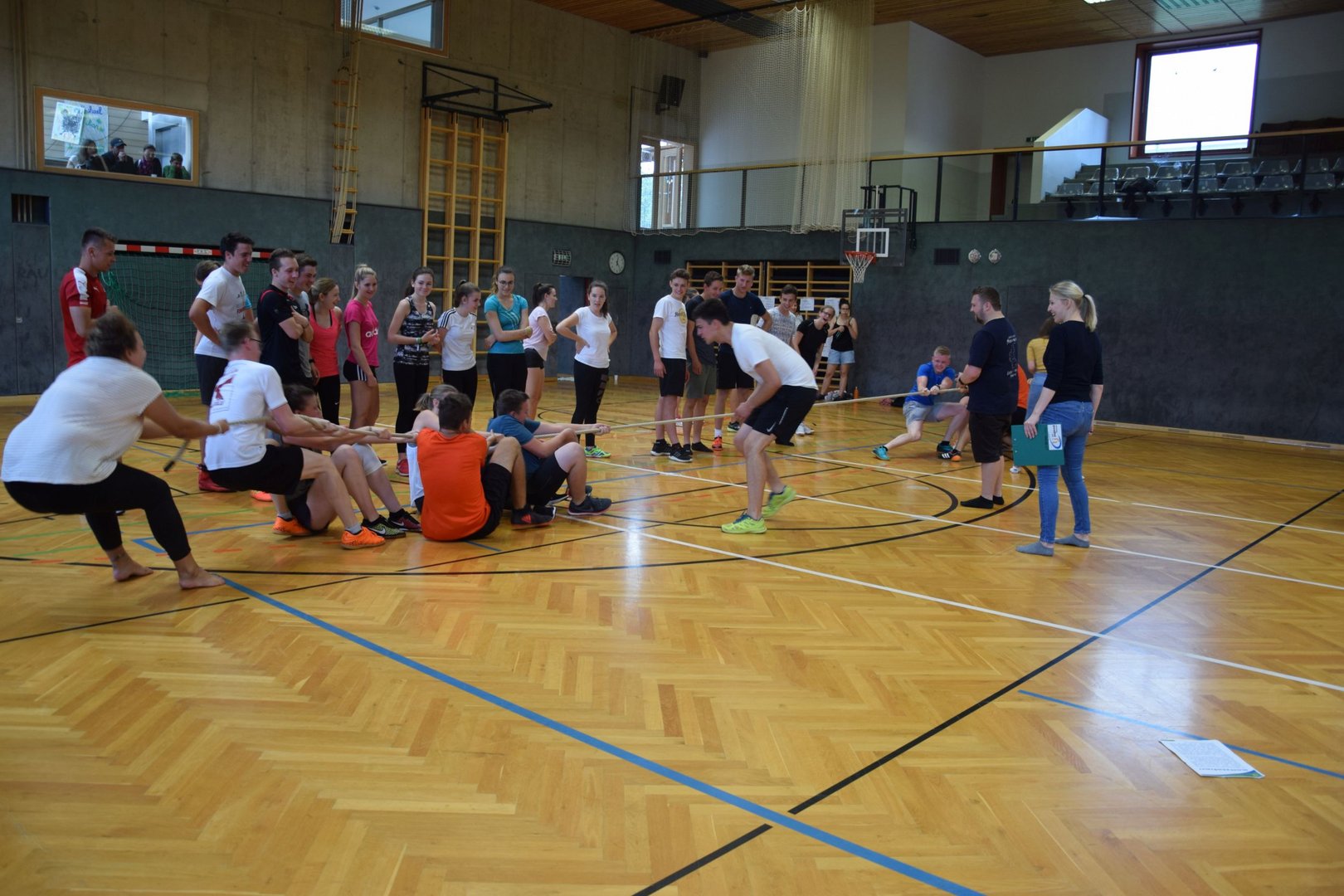Aufgrund der widrigen Witterungsbedingungen, mussten die Bezirkssommerspiele 2019 in St. Ruprecht/Raab leider in einer etwas abgespeckten Version in der Halle durchgeführt werden. Der Geländelauf und der Dreikampf fielen im wahrsten Sinne des Wortes ins Wasser. Die volle Konzentration galt daher den Mannschaftsbewerben Völkerball und Seilziehen. Ein Team bestand jeweils aus 3 Burschen und 3 Mädels.