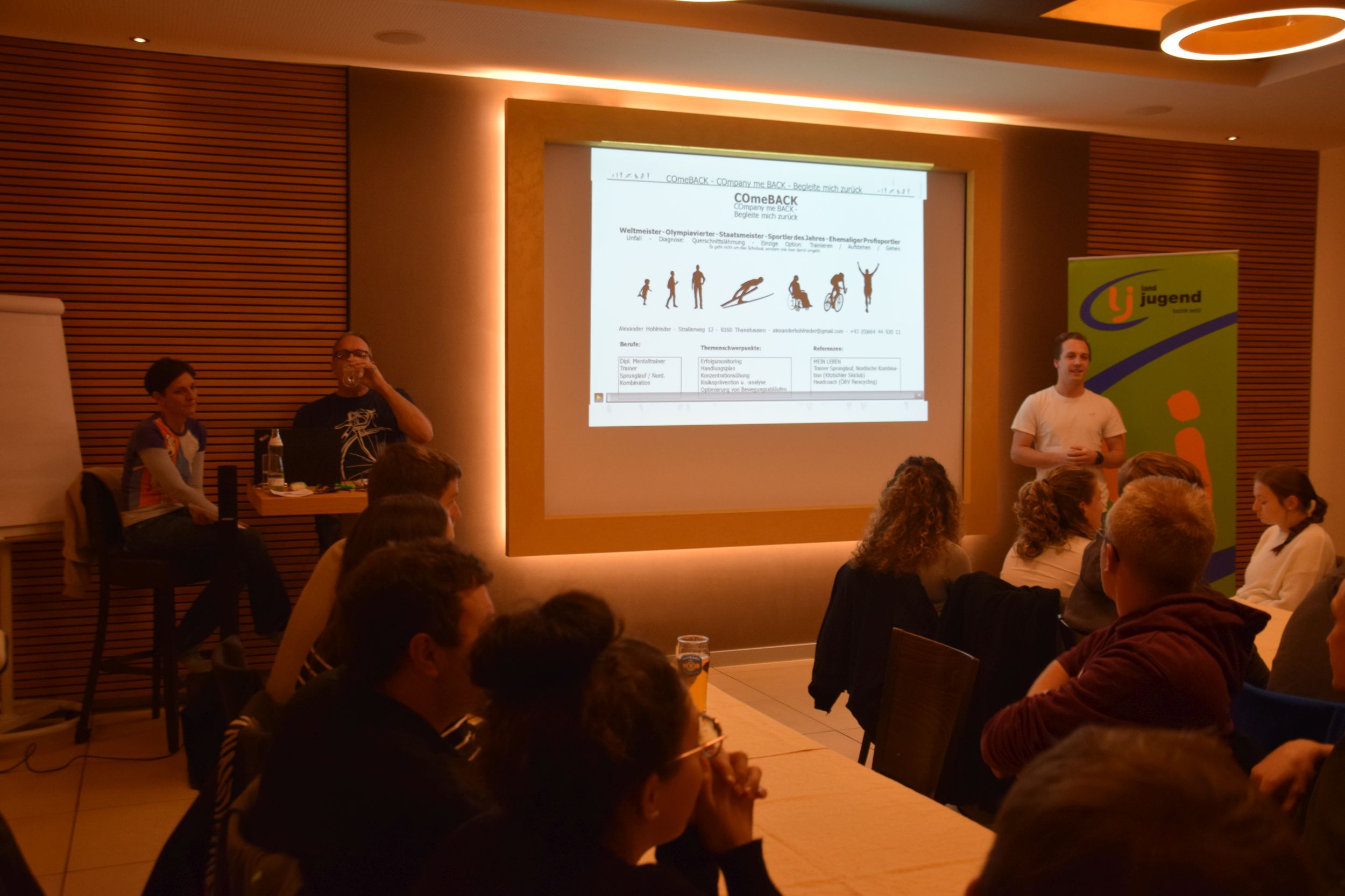 Am 12. November 2024 versammelten sich zahlreiche Mitglieder der Landjugend im Hotel Restaurant Allmer in Weiz, um an einem besonderen Vortrag von Alexander Hohlrieder und seiner Frau Stephanie teilzunehmen. Der ehemalige Spitzensportler und Mentalcoach begeisterte das Publikum mit seiner inspirierenden Lebensgeschichte und gab wertvolle Einblicke in die Kraft der mentalen Stärke.