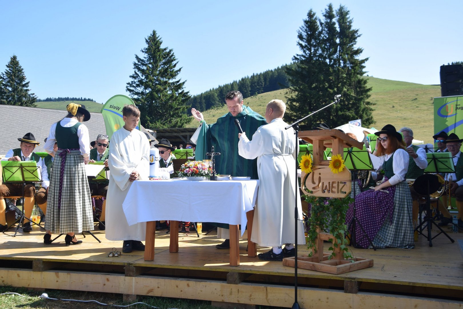 Bei traumhaftem Wetter wurde das Tanzbein geschwungen, der Kistenturm erklommen, die Melkliesl getestet und dem Marschkonzert der Stadtkapelle Gleisdorf gelauscht. Diese umrahmten auch die Heilige Messe, welche mit MMag. Thorsten Schreiber gefeiert wurde.